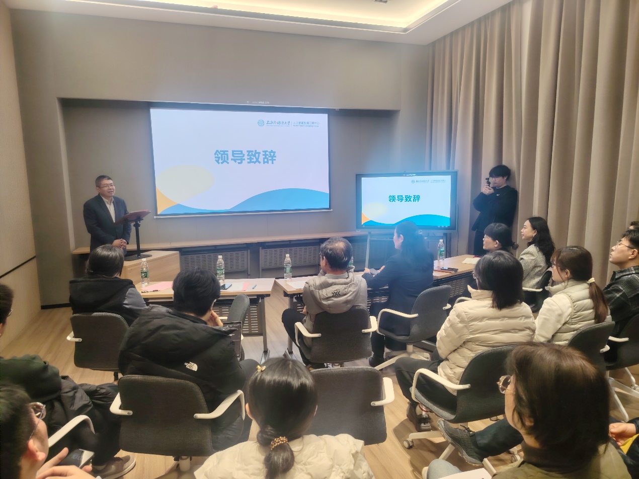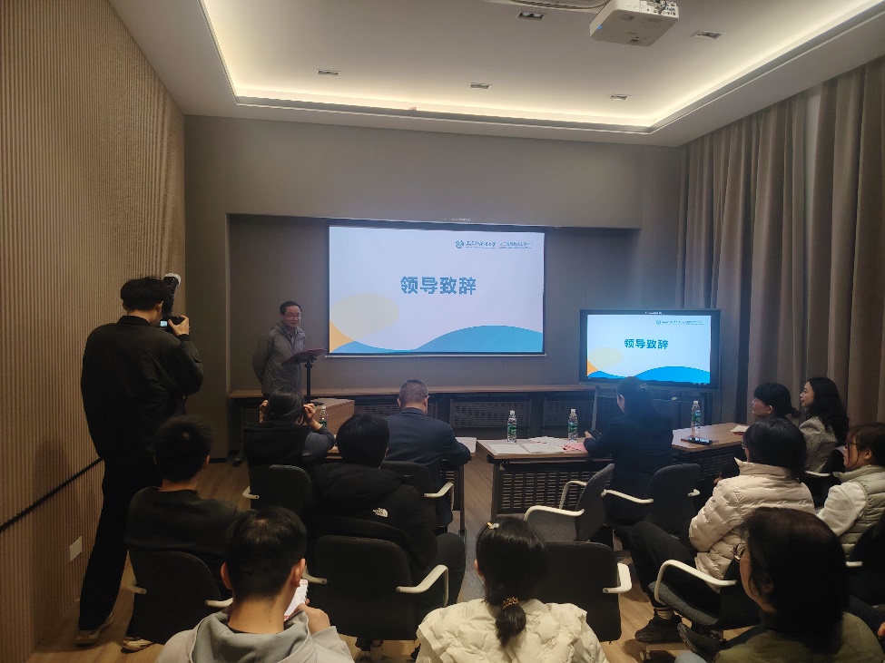 致辞环节,学校党委办公室、校长办公室主任、 数智化应用与管理工作办公室主任蒋昕宇指出,本次活动是推动AI与教育深度融合的关键一步,也是落实学校“十五五”规划和“AIM”方案的重要实践。他表示,活动将构建“真体验、真交流、真反馈”的务实生态,帮助师生系统认识智能体并掌握应用能力,培养具备全球胜任力的新时代人才。