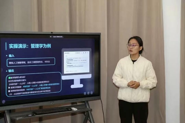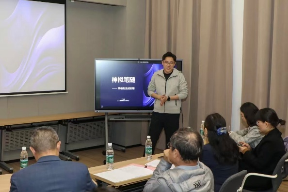 在作品展示环节,人工智能数据工程中心技术部部长于正旺带来《神拟笔随(风格化稿件引擎)》主题分享,系统讲解了技术平台的核心架构与校园应用场景。全栈工程师李梦雪则展示了《CaseAI(课堂教学案例助手)》,针对教学中新案例缺位的痛点,展示了AI在提升教学质量方面的实例。