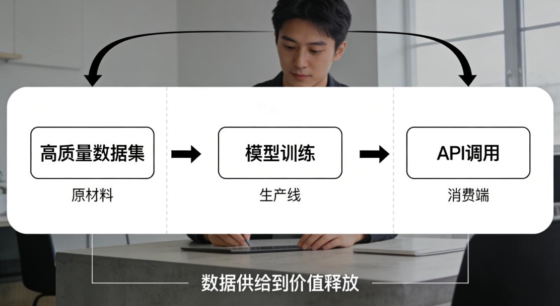 高质量数据集是词元的"原材料",模型训练是词元的"生产线",API调用是词元的"消费端"。三者咬合在一起,构成了"数据供给到价值释放"的完整循环。